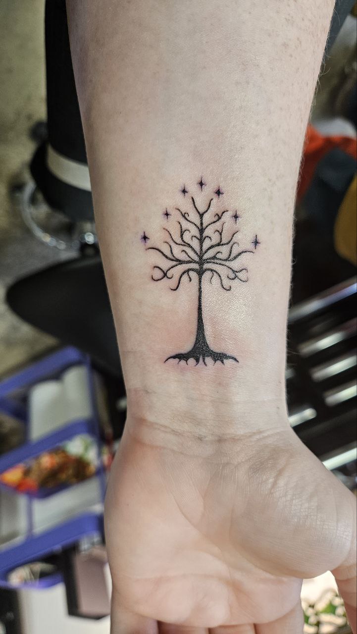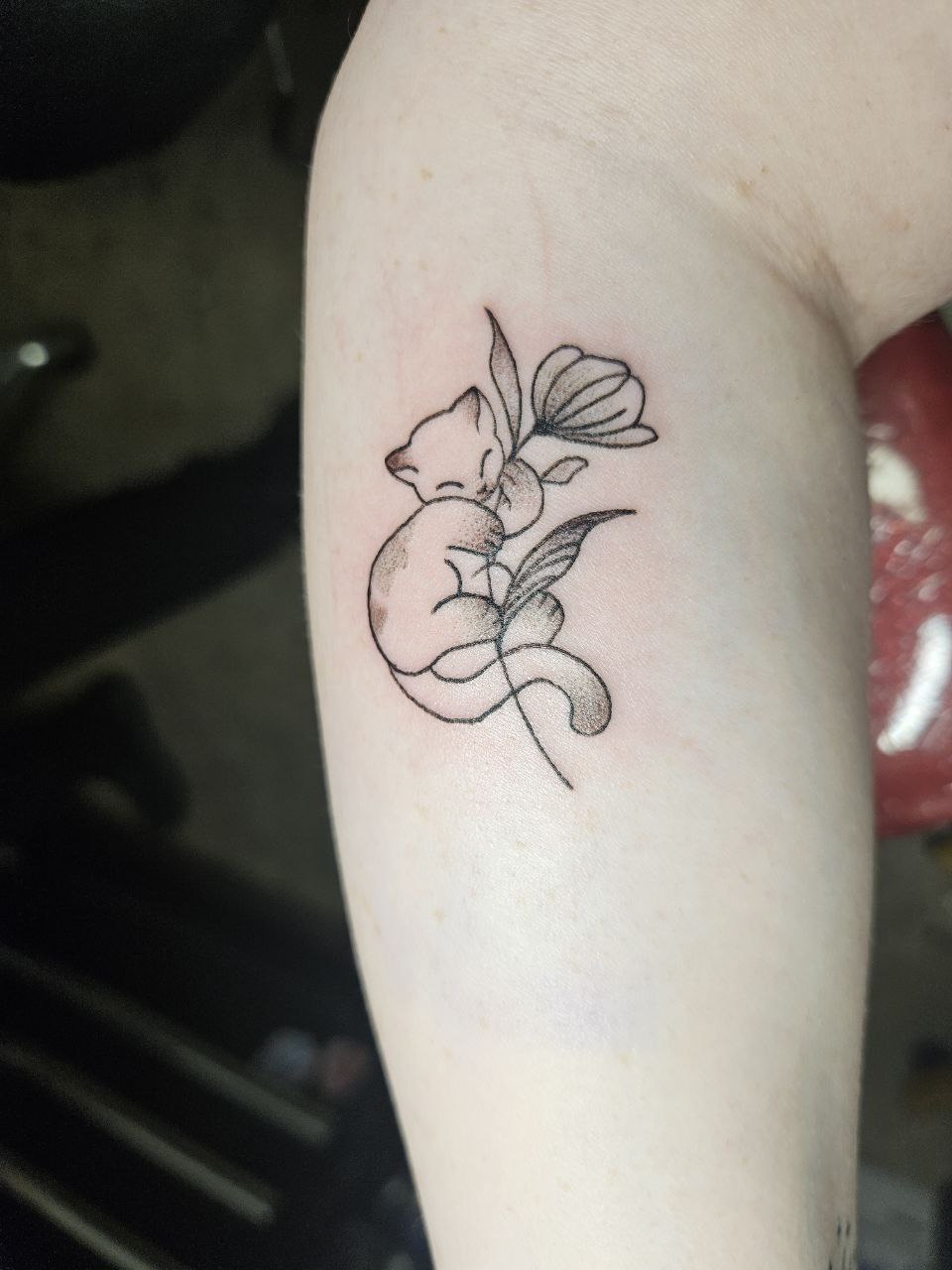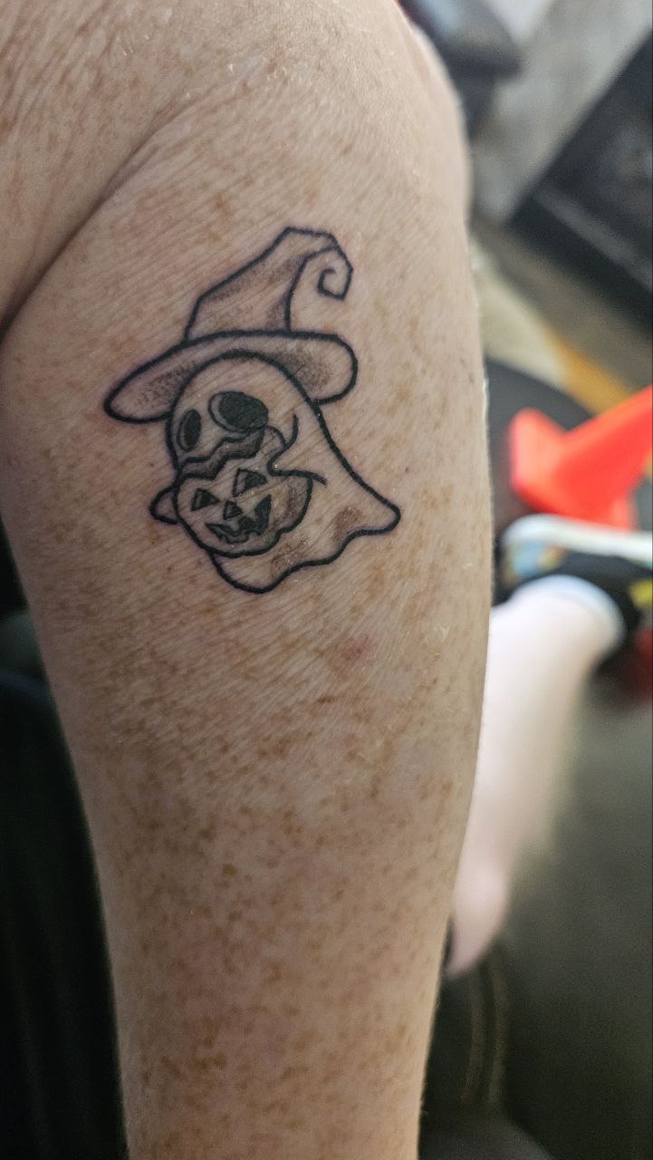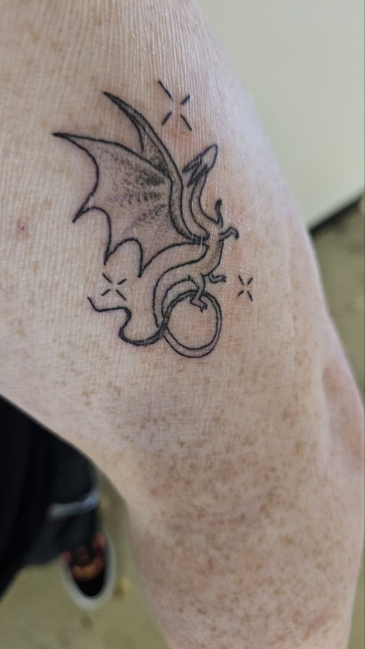 My second problem is that I have a lot of skin. I have more canvas space on my body than I know what to do with. So why limit myself with my decorations? I have more than enough space for memorial tattoos, meaningful tattoos, and as many silly cute tattoos as I can afford. Actually, my problem is having enough money to fund it all. I have found a love of picking redesigned flash tattoos from artists. These designs are created for me or by me. I just pick them off the wall because I think they look cool. They mean nothing to me. And now they are permanently part of me. These include a little cat, a ghost, a dragon, and snail. Nothing important whatsoever. But I love them so very much. I plan to get many more over time. I'm collecting flash on my left arm right now, with the intention of tying it all together with some scribbles and maybe song lyrics. I want my arm to look like the margins of my notebooks in school, covered in art and drawings not a single useful note to be found. The main difference will be that it is also a showcase of different artists and styles, something I am very passionate about as an artist. I love the diversity of art that covers me and I can't wait to expand it further.