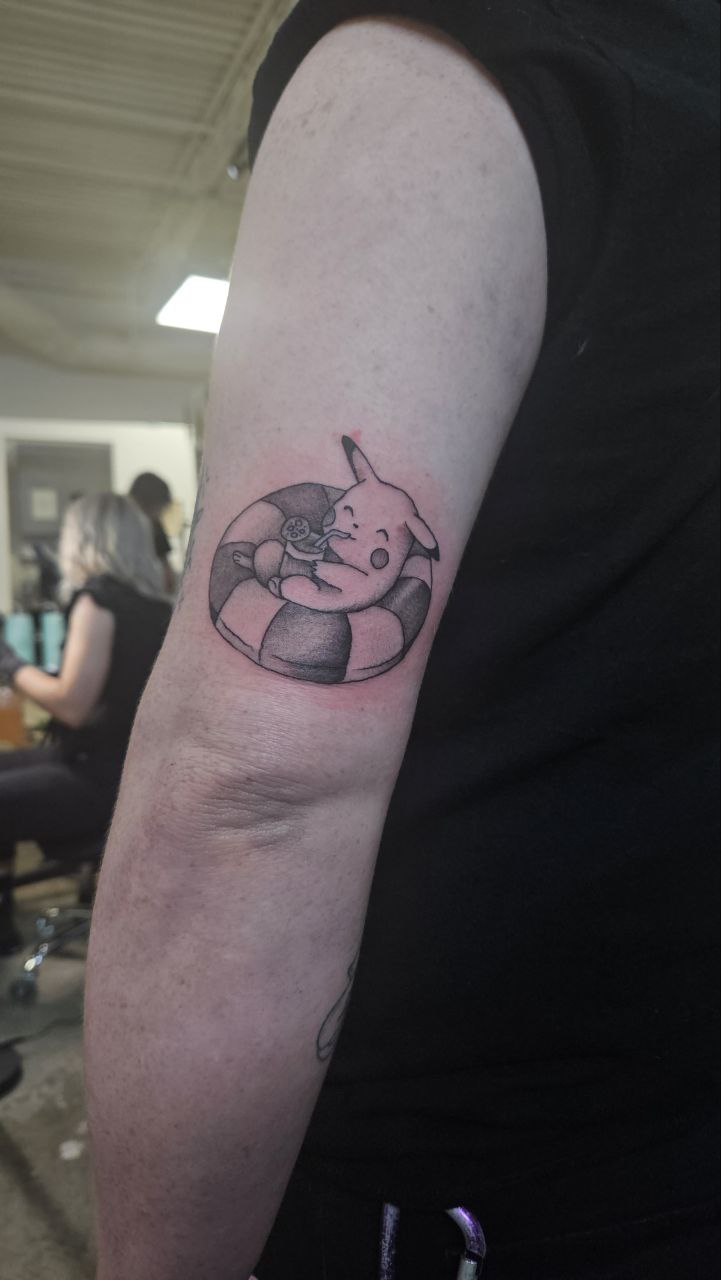 My main problem with this idea of special meaning in tattoos is pretty simple: Even a special meaning isn't permanent. Now, I'm not saying your tattoos *shouldn't* have a special meaning to you. I'm saying not to let the need for meaning get in the way of decorating your body. See, the second tattoo I ever got was really important to me at the time. It had been important to me for years and continued to be for a while after I got it. No regrets, right? Some time after I got that tattoo tho, the meaning behind it's importance to me was irreparably soured. I couldn't stand this bit of ink on my skin. And yes, I can hear out there saying "see? this proves my point! it's too permanent!" but you're wrong on that count as well. That tattoo no longer exists. The ink is still there, I didn't get laser removal. I got a cover up. Luckily that original tattoo was small enough that it was an easy task to cover it up. Not to mention, I had a fantastic artist work on the cover. It's my first color tattoo now actually! It doesn't have an incredibly deep meaning. It's just a design I liked. Moreover, it's something I don't think can be easily soured unless Pokémon decides to become openly transphobic. Which is possible, tho unlikely.